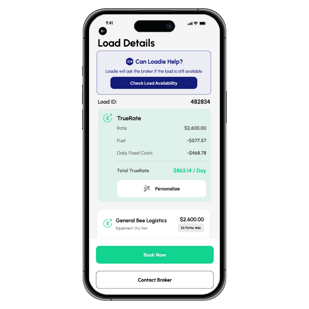 Done are the days of being on hold and getting transferred around to see if a load is still there. Now you can have Loadie call and email brokers on your behalf, saving you hours of hassle.